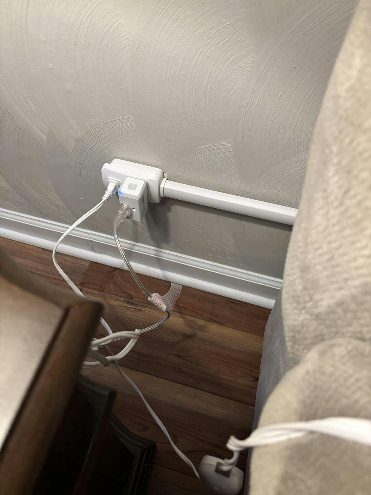 I really like this plug extender, now the bed doesn't have to moved. It has a android and iphone adapter on the side plus there's a slot where you can lay the phone while changing, nolonger losing the phone in the bed. Try it for hard to reach wall sockets. It's easy to set up.